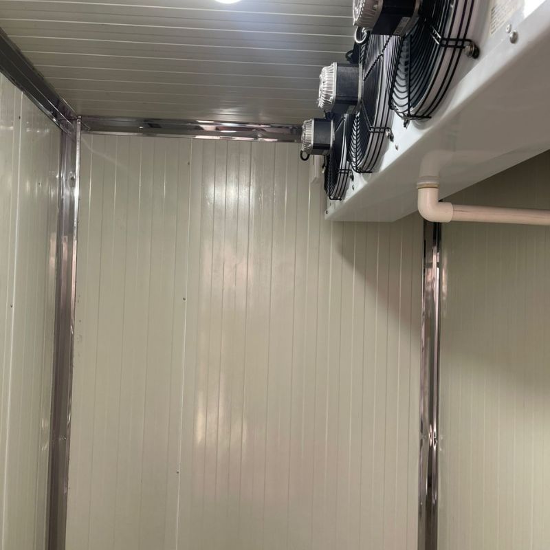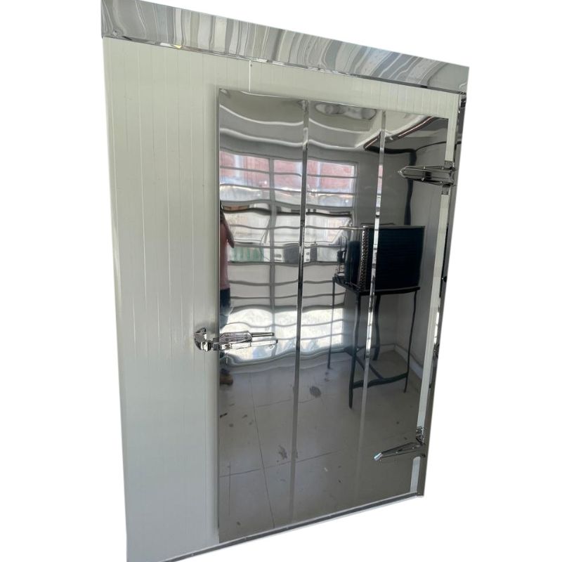 | Puerta | Batiente de 1.00 x 2.00 mts con herrajes cromados tipo pesado especial para cámara frigorífica. |