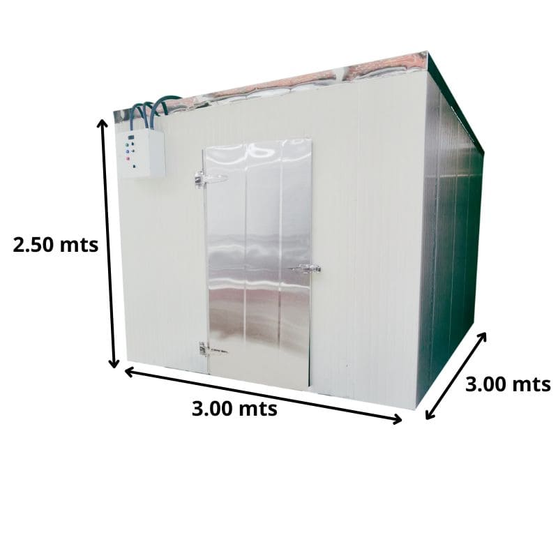 | Puerta | Batiente de 1.00 x 2.00 mts con herrajes cromados tipo pesado especial para cámara frigorífica. |